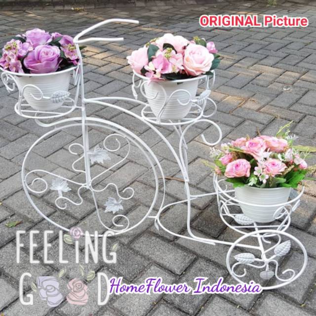 Rak bunga model sepeda kecil imut banget. Model ini sangat bagus dan unik serta sangat cocok untuk anda yang suka dengan seni. Harga rak pot bunga sepeda terbaru jika anda ingin membeli rak pot bunga sepeda namun masih bingung dengan harga yang ditawarkan berikut ini adalah daftar harga rak pot bunga sepeda murah terbaru yang bersumber dari beberapa toko online indonesia. Model rak bunga minimalis yang pertama adalah rak bunga berbentuk sepeda.