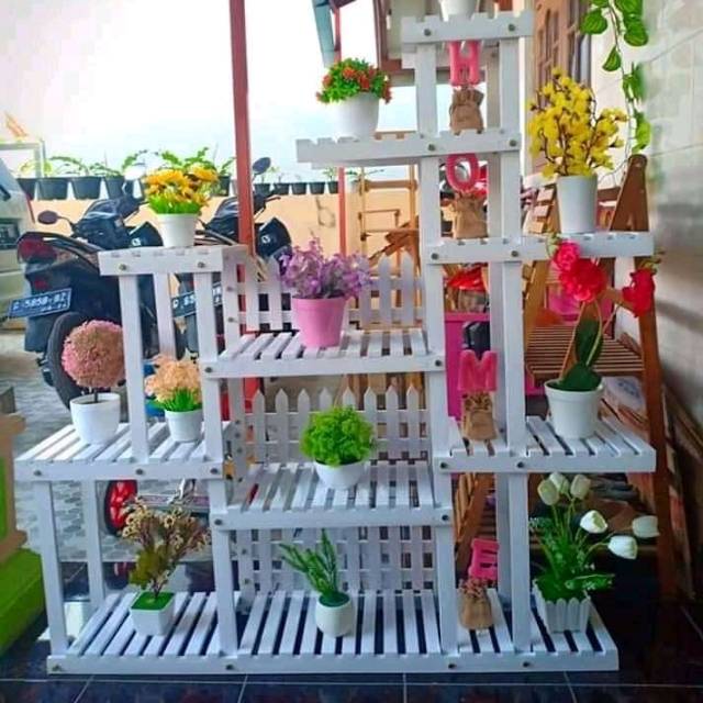 Dengan rak ini anda juga bisa memadupadankan warna warni bunga koleksi anda berkat susunan 6 tingkatnya. Bagi kamu pecinta desain yang sederhana tapi ingin hunian tetap tampil dekoratif model rak bunga di atas bisa jadi pilihan terbaik untukmu. Jual beli online aman dan nyaman hanya di tokopedia. Rak ini terbuat dari bahan kayu asli yang kuat awet dan tahan lama.